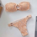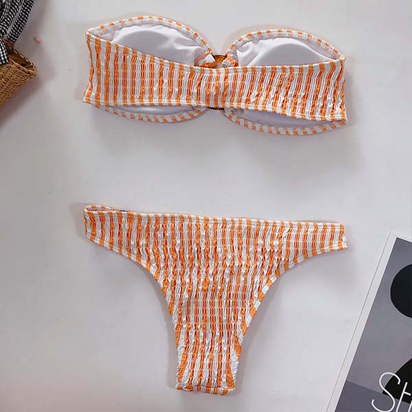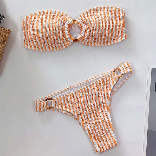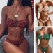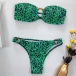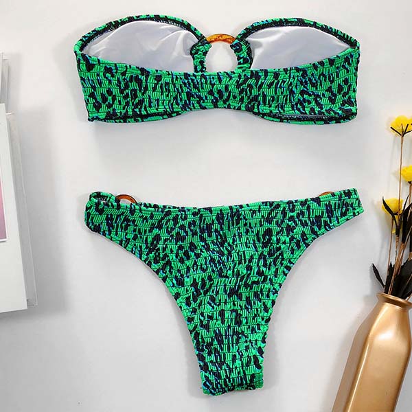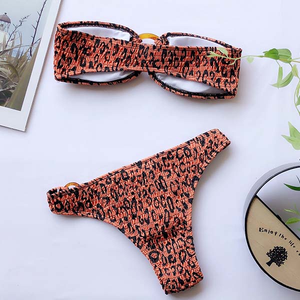 Including a bandeau bikini top and a low waist bikini bottom,this bikini set that features chic and eye-catching printed details is a good way to flaunt off your sexy and seductive curve when you head to the seaside.