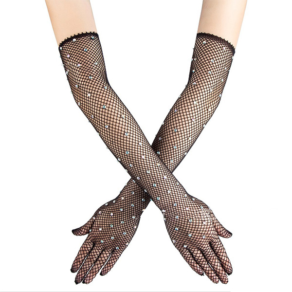 Sensuella meshhandskar med glittrande strass – perfekt för festen