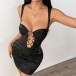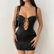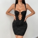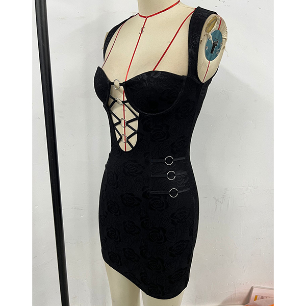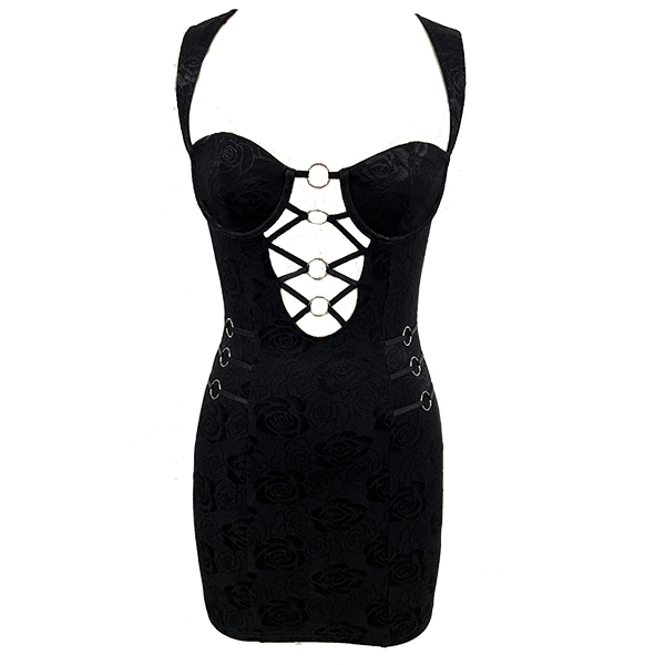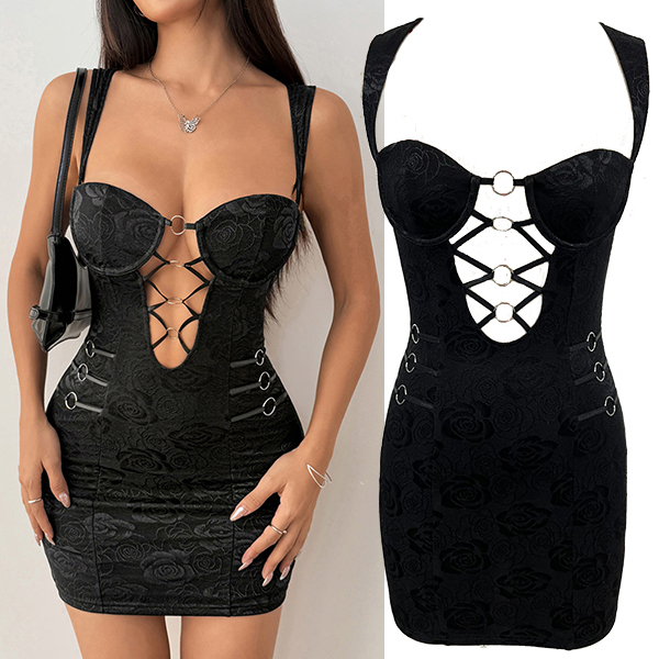 Sexig festklänning med O-ringad framsida, snörning och blommigt tryck, hjärtformad halsringning och figurnära passform