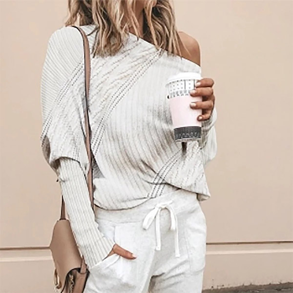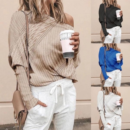 In these early autumn days,this wonderful knit top can easily strike your mind. Features a solid color,the dolman sleeve and oblique shoulder design will make you look sexy and flirty. Moreover,its soft and cozy knitted fabric can ensure you the comfy. You can match with a jeans to have a fashionable autumn look.