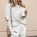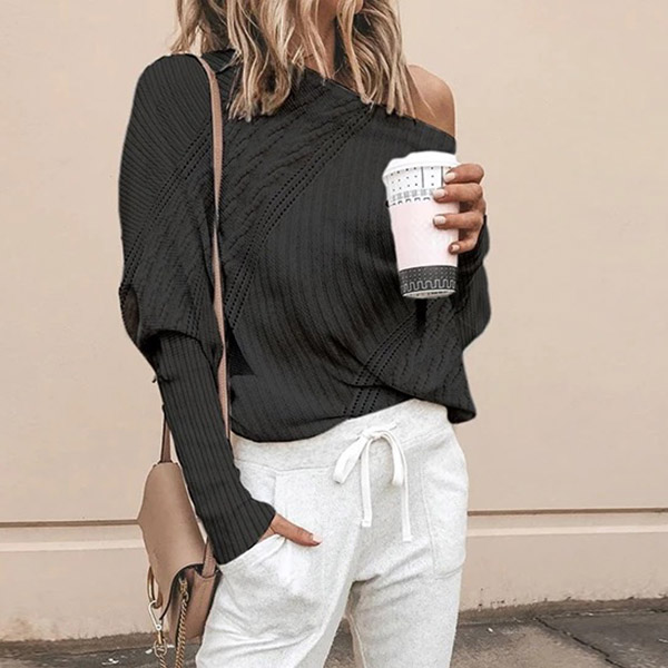 Sexy Oblique Shoulder Dolman Sleeve Solid Color Knit Top