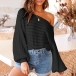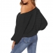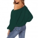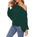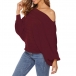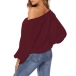 Sexy Oblique Shoulder Dolman Sleeve Solid Color Knit Top
