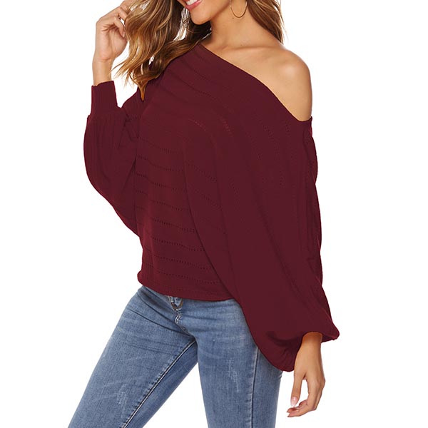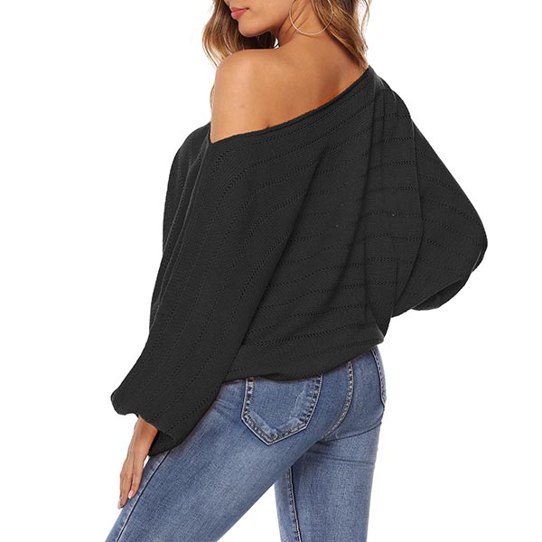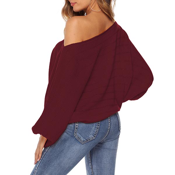 Flaunt your chic and unique personality with a well-tailored number and this knit top is the perfect example. Solid color style,the dolman sleeve and oblique shoulder design are the highlights,which make this piece look attractive. Your style also can have a boost when you wear this little piece.