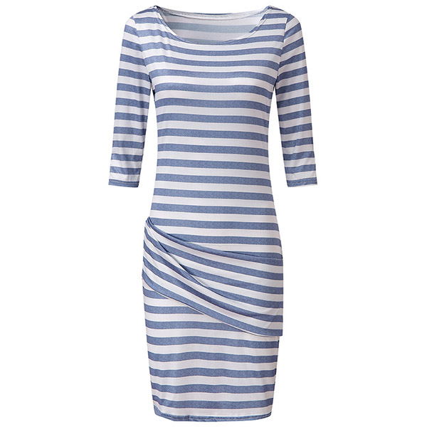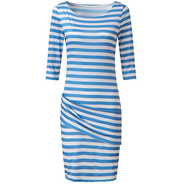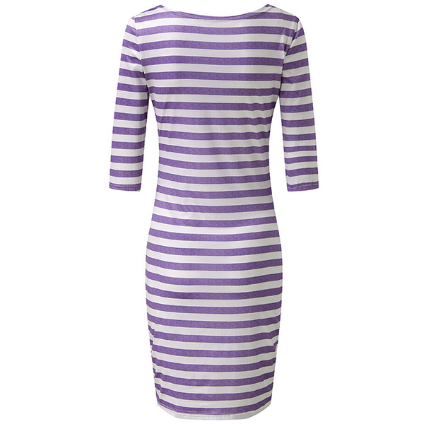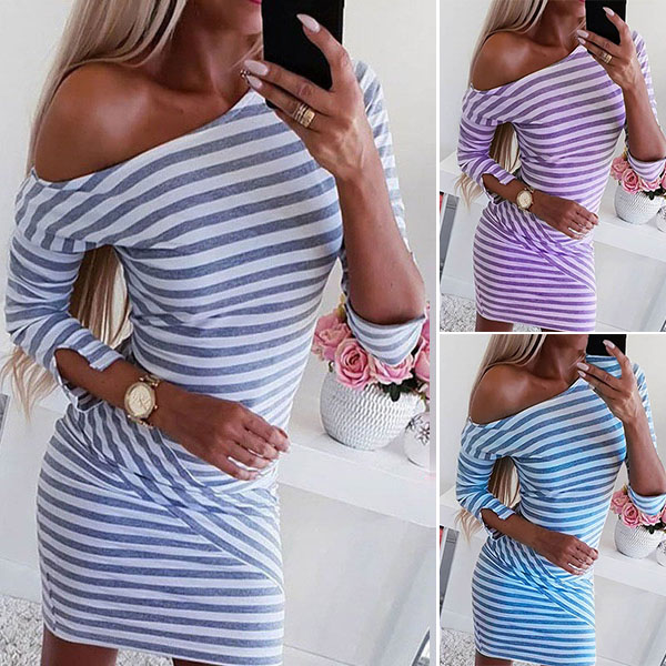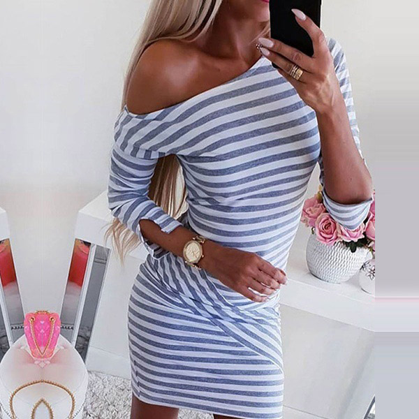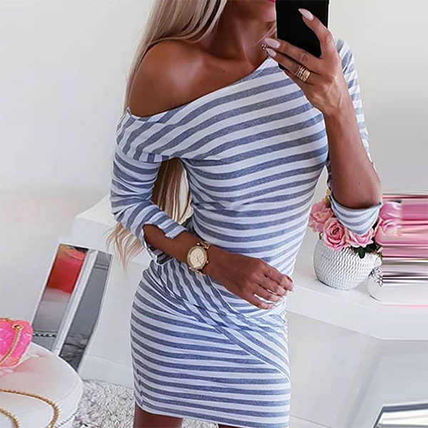 You've got a busy schedule and lots to do, so getting dressed in the morning shouldn't be a cause for stress. Your daily routine can be made much easier with the help of this striped dress. The half sleeve and oblique shoulder design make this piece look different. Just need to match with your favourite shoes,then you can be ready to go out!