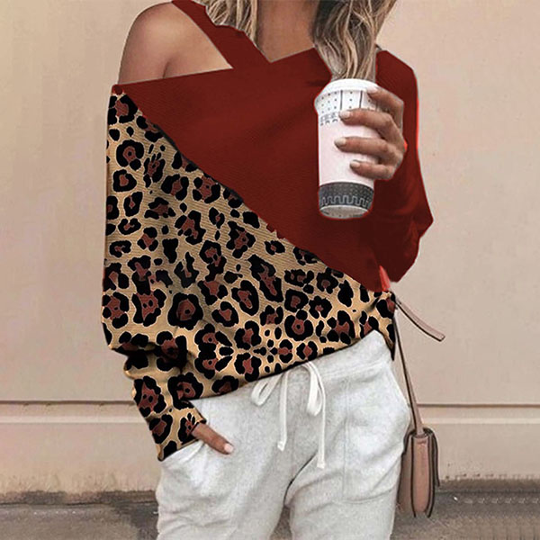 When strolling on the street with this top,you can easily win more eyes. The contrast color and leopard spliced details make this piece look so stylish and eye-catching,while the oblique shoulder design can lend you a dash of sexy vibes. For a stylish weekend look,you can have a try this little item.