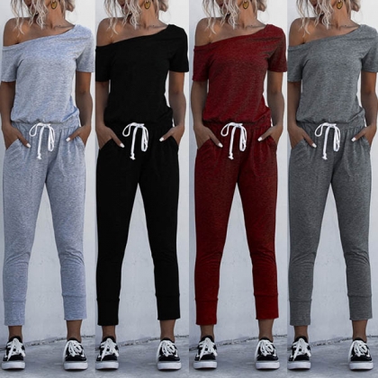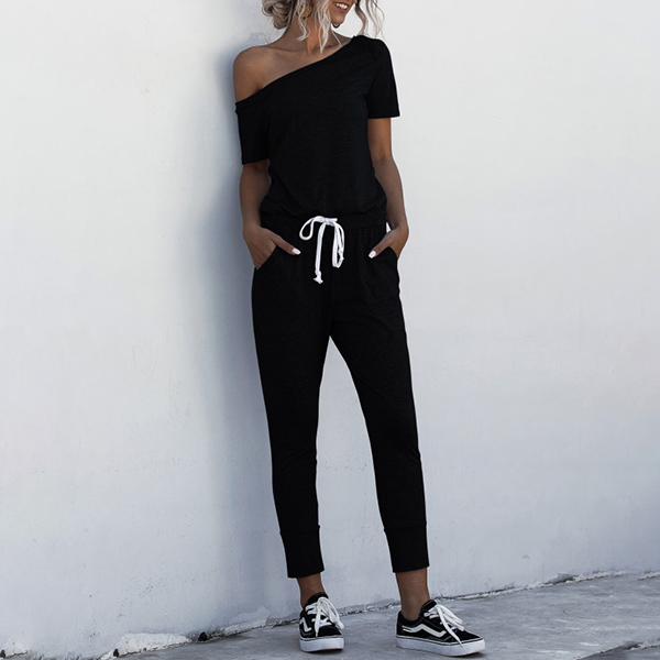 Wanna update your daily style? Then let this jumpsuit help you. It comes with a solid color,the oblique shoulder design will lend you a dash of sexy and feminine vibes,while the high waist and clean silhouette design will showcase your slender figure. Just slip into this piece to start your wonderful day.