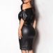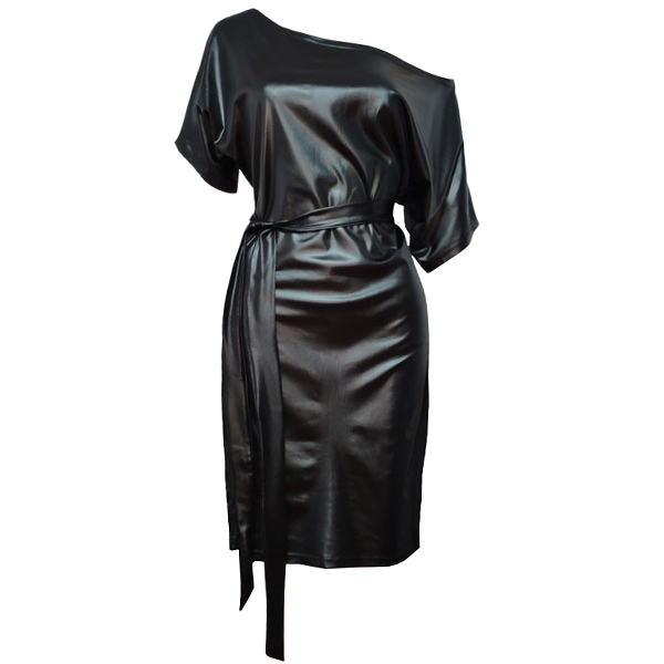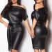 Sexig klänning med kort ärm och snedställd axel i slim-fit passform av PU-läder