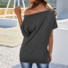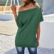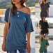 Sexy Oblique Shoulder Short Sleeve Solid Color T-shirt