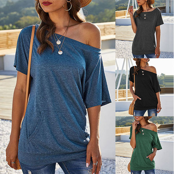 This t-shirt that combines of simple,cozy,stylish yet flirty vibes is worth to arouse your attention. Solid color style,the oblique shoulder design can lend you a sexier look,while its soft fabric and loose silhouette design can ensure you a comfortable day. In these summer days,this piece can be your new darling!