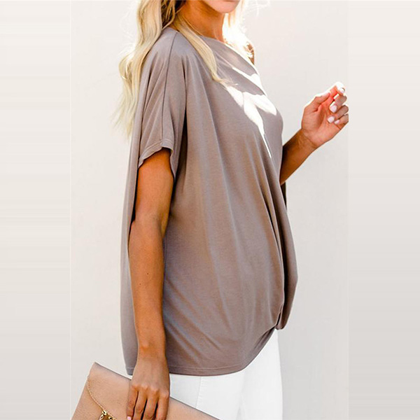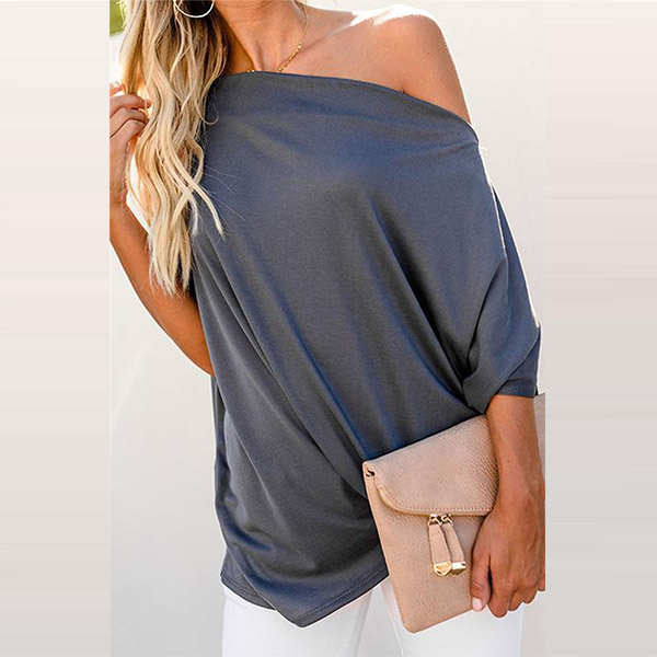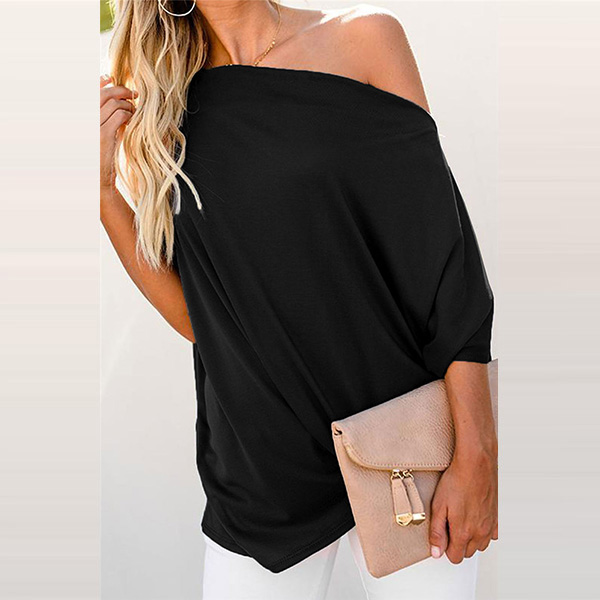 Attracted by this chic and sexy t-shirt? Then don't miss it! It comes with a solid color,the oblique shoulder and twisted hem design are the highlights,which make this piece look so different. When you wanna a different daily style,you can have a try this piece.