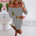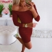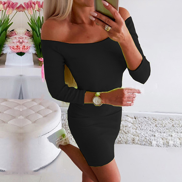 Sexy Off-shoulder Boat Neck 3/4 Sleeve Slim Fit Dress