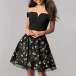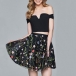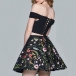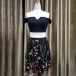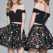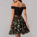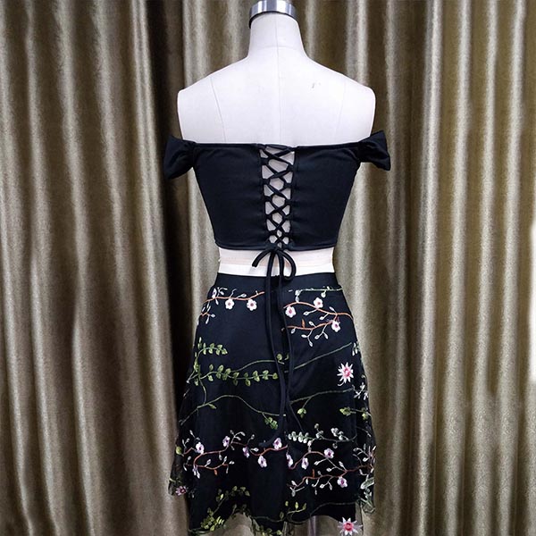 Sexy Off-shoulder Boat Neck Crop Top + Embroidered Skirt Two-piece Set