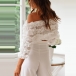 You can have an effortless charming style when you don this crop top. It is finished with half sleeve and boat neck design,the ruffle details make this piece look more attractive. We suggest you matching with a high waist shorts to achieve for a stunning and beautiful look.