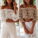 Sexy Off-shoulder Boat Neck Half Sleeve Ruffle Crop Top