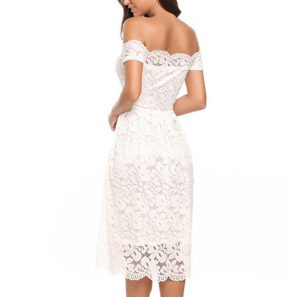 You can maintain your alluring feminine appeal in this lace dress, that's why we suggest it to you! The high waist and clean silhouette design can showcase your slender figure,while the off-shoulder boat neck design gives you the chance to show off your charming shoulder and seductive collarbone. At this time,adding a choker necklace would make you look more beautiful!