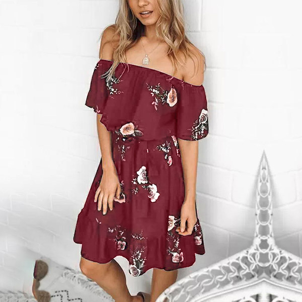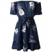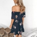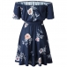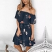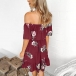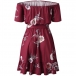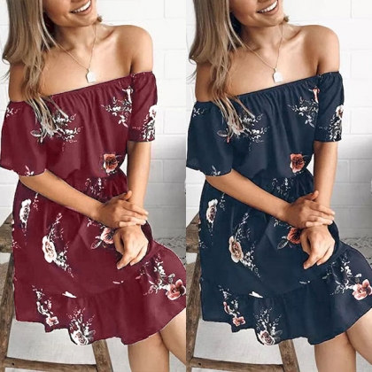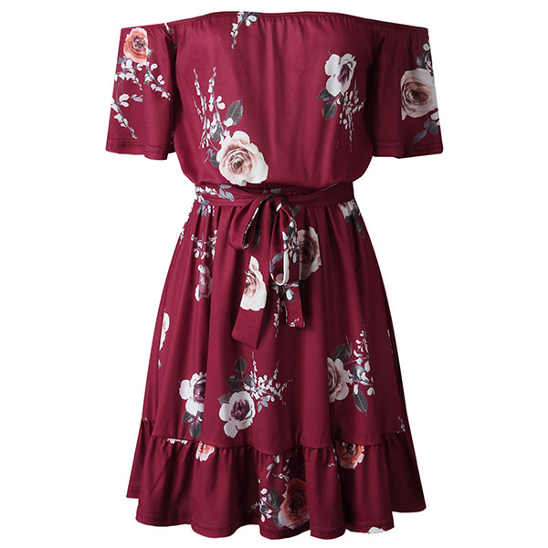 Sexy Off-shoulder Boat Neck High Waist Printed Dress