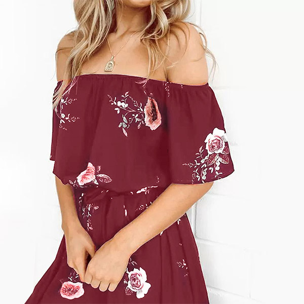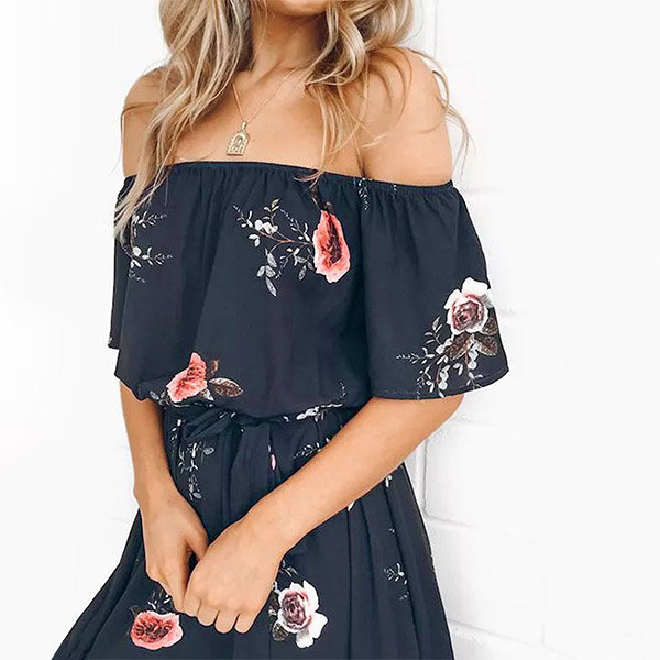 When you have a dating with your boyfriend,you can trust in this dress to express your beauty and femininity. Features chic printed details,finished with off-shoulder boat neck and high waist,this dress can make you look effortlessly charming and beautiful. Perhaps adding a choker necklace would be more perfect!