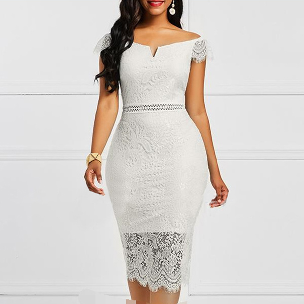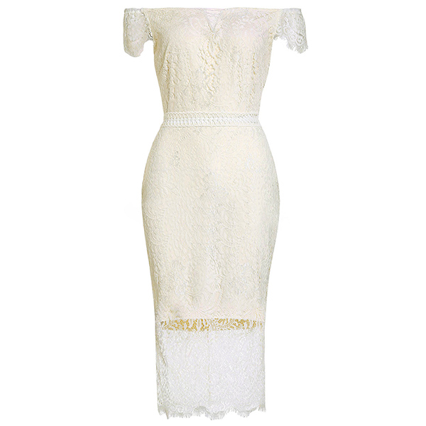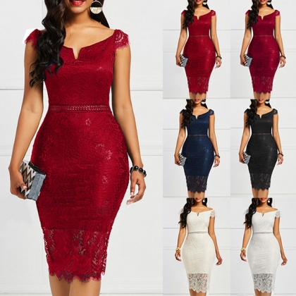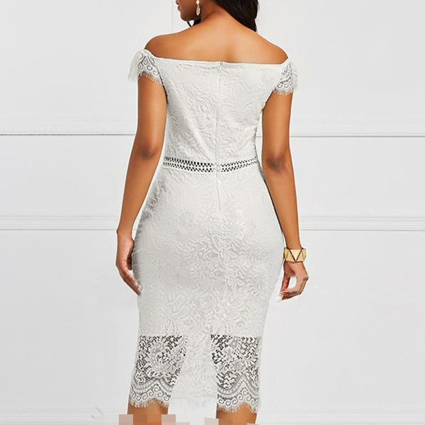 Sexy Off-shoulder Boat Neck High Waist Slim Fit Lace Dress