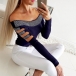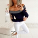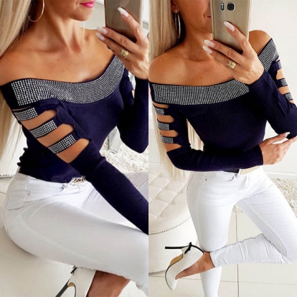 Sexy Off-shoulder Boat Neck Hollow Out Long Sleeve Rhinestone Top