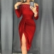 Sexy Off-shoulder Boat Neck Irregular Hem Beaded Party Dress