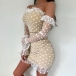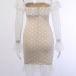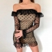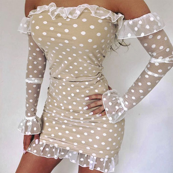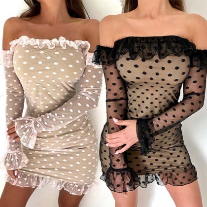 Sexy Off-shoulder Boat Neck Long Sleeve Gauze Spliced Dots Printed Dress