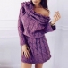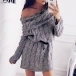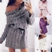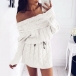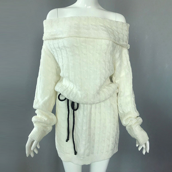 Sexy Off-shoulder Boat Neck Long Sleeve Solid Color Sweater Dress