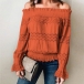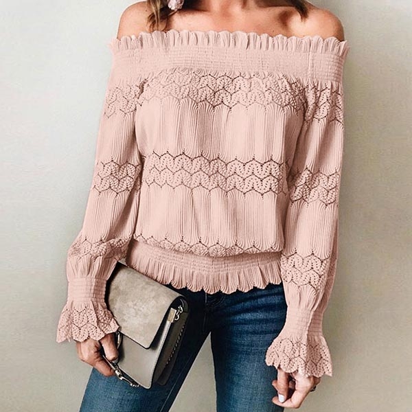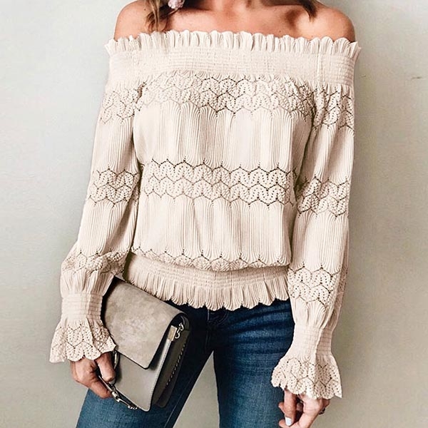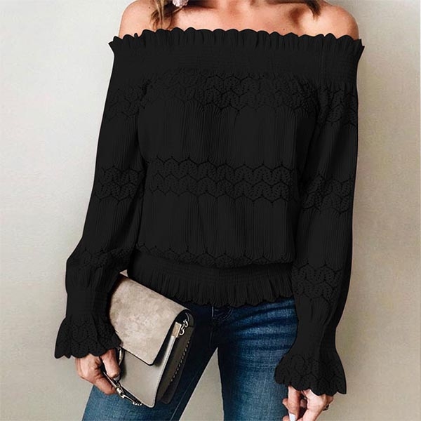 Features a solid color,the ruffle boat neck design gives you the chance to showcase your