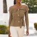 Cozy yet keeping it feminine, introduce this wonderful piece into your smart ensemble. It boasts a solid color,the off-shoulder boat neck design gives you the chance to showcase your charming shoulder and seductive collarbone,while the waist strap design will better highlight your figure. You can easily enhance your charm with this little piece.