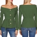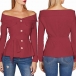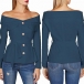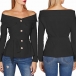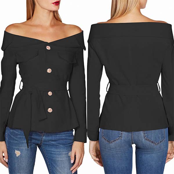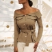 Sexy Off-shoulder Boat Neck Long Sleeve Solid Color Top with Waist Strap
