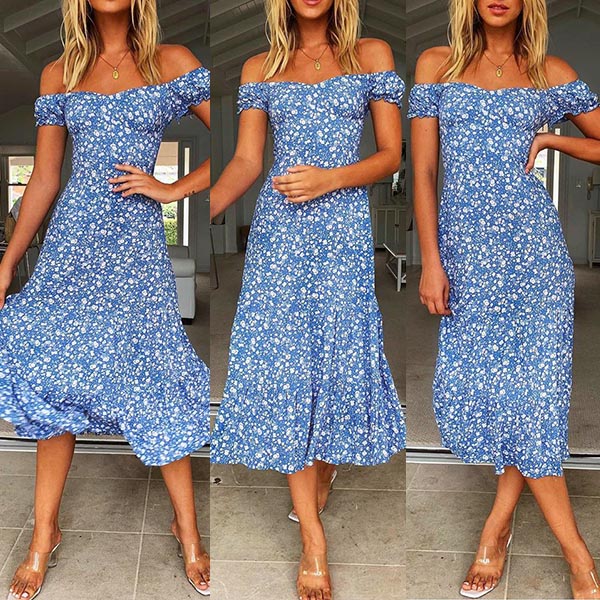 Wanna a sexy and charming dating look? Then make your eyes focused on this dress. It features vibrant floral print details,the off-shoulder boat neck design can lend you a sexier look. Matching with a choker necklace and sexy heels,you can't be more beautiful!