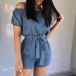 Sexy Off-shoulder Boat Neck Short Sleeve High Waist Romper