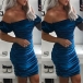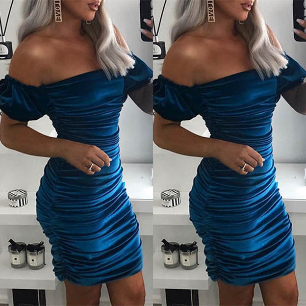 Sexy Off-shoulder Boat Neck Short Sleeve Slim Fit Wrinkled Dress