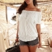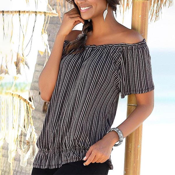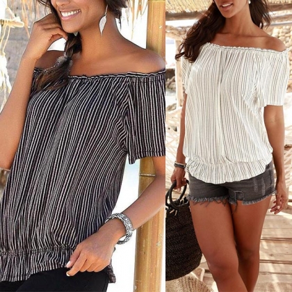 Start your wonderful day from a delightful piece such as this top. The stripe element design makes this piece stylish and popular,while the off-shoulder boat neck design gives you the chance to showcase your charming neck and seductive collarbone. We suggest you adding a choker necklace for a more stunning look!
