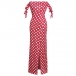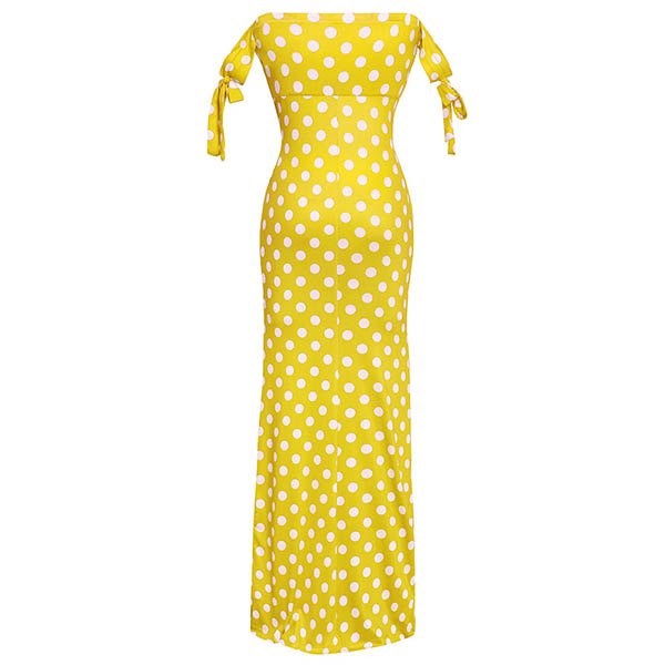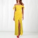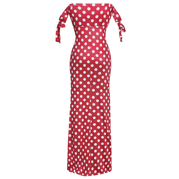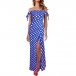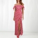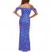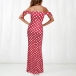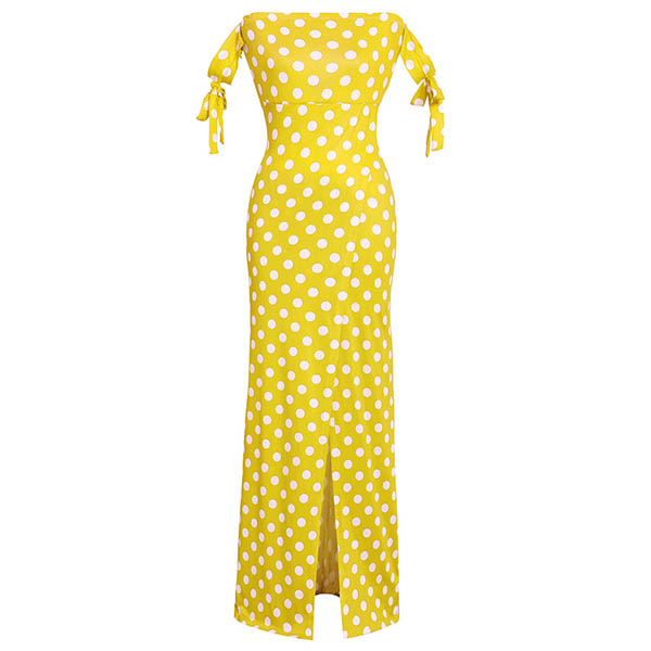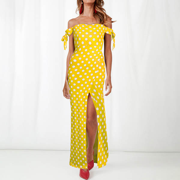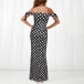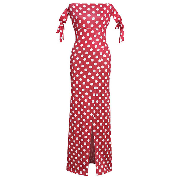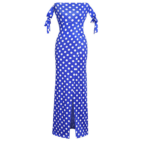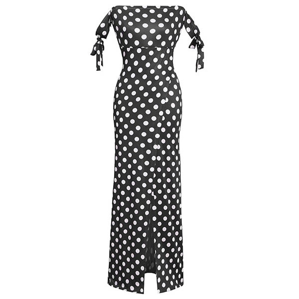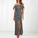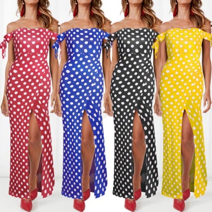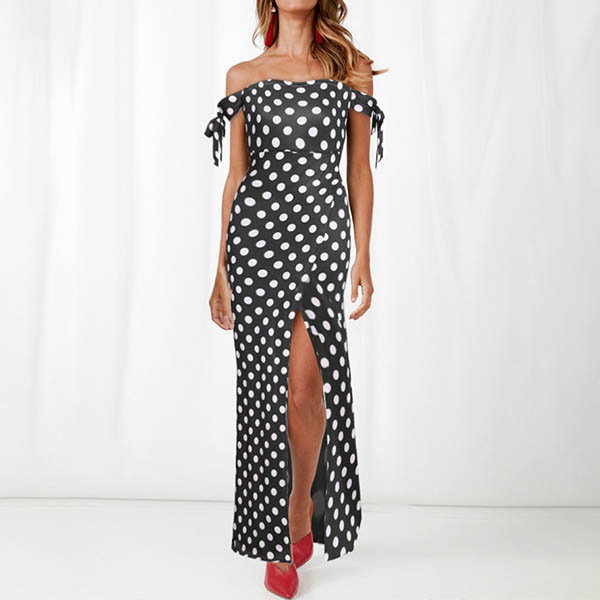 Sexy Off-shoulder Boat Neck Slit Hem Dots Printed Dress