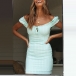 Sexy Off-shoulder Boat Neck Solid Color Slim Fit Dress