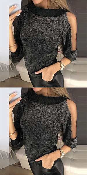 For these autumn days,this knit top can easily strike your mind. What makes this piece look so attractive? It owes to the off-shoulder and dolman sleeve design. Try to match with a tight pants to finish a fashionable autumn look.