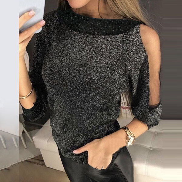 Sexy Off-shoulder Dolman Sleeve Round Neck Knit Top