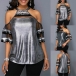 Sexy Off-shoulder Gauze Sequin Spliced Top