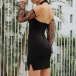 You can easily arouse more eyes when you slip into this sexy and flirty dress. Halter style,the off-shoulder and gauze spliced details make this piece look more alluring,while the fit silhouette design can showcase your slender figure. For tonight's dinner date,you can trust in this dress to make you be the focus!