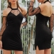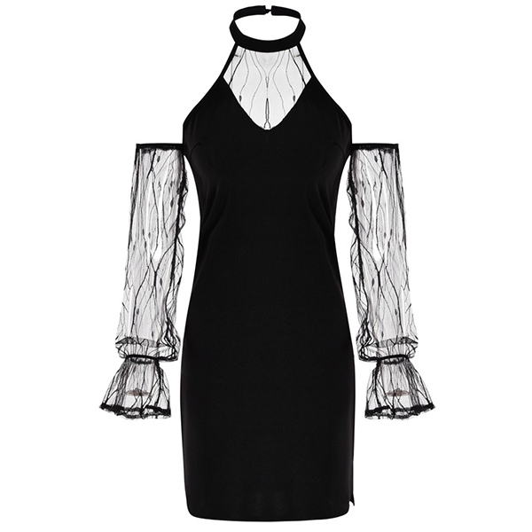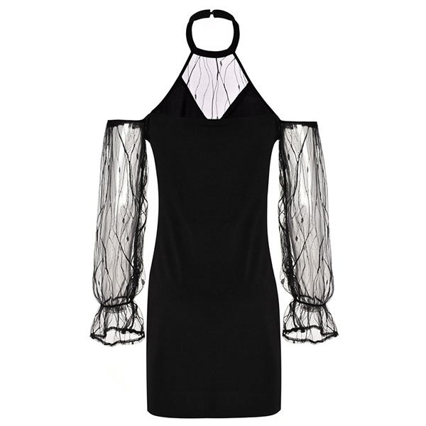 Sexy Off-shoulder Gauze Spliced Long Sleeve Halter Dress
