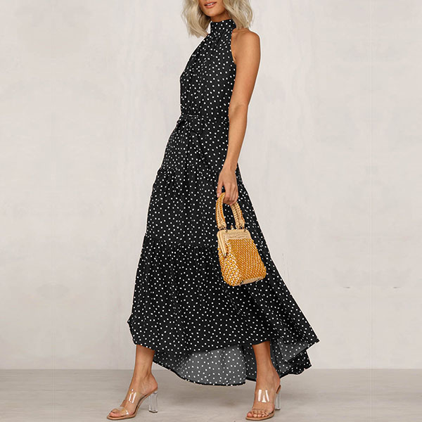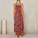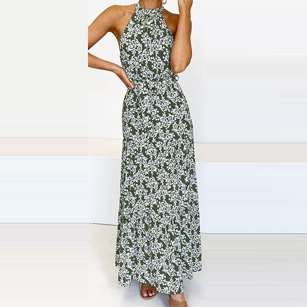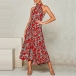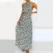 Sexy Off-shoulder High Waist Printed Halter Dress