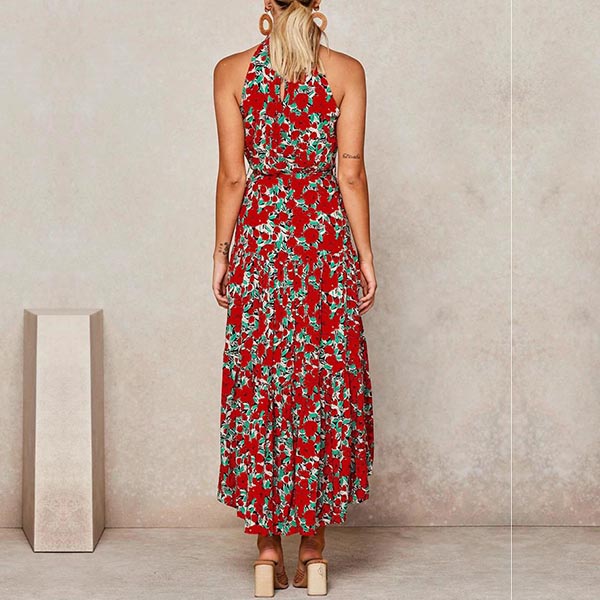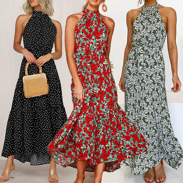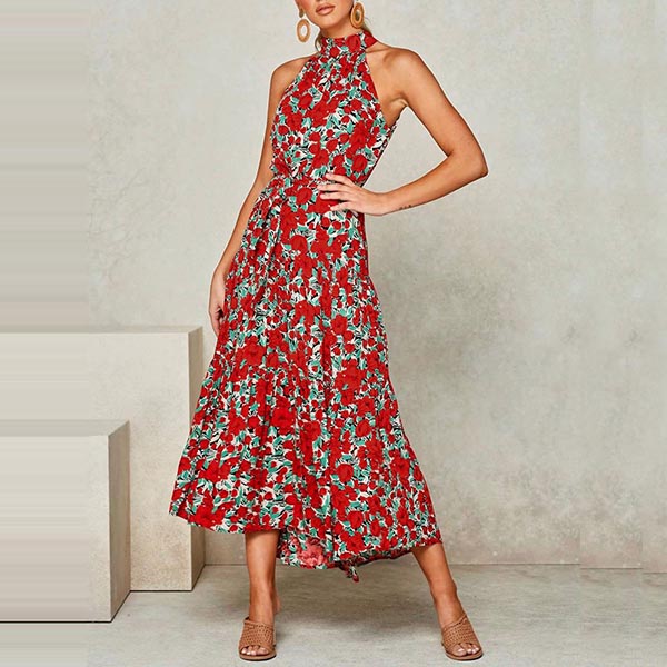 Any girl can look effortlessly charming and beautiful in this dress. Halter style,with off-shoulder and high waist design,sexy yet flirty. Its vibrant floral print details will offer you a more eye-catching look. For your beach days or weekend trips,this beautiful dress can be your good choice.