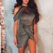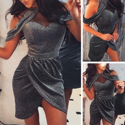 Your style cannot be outmatched when you are wearing this stunning dress. The off-shoulder,irregular hem and gauze spliced design make this piece look so sexy and flirty,while the fit silhouette design can highlight your perfect curve. When stepping into a party with this dress,you can easily arouse a splash!