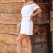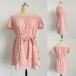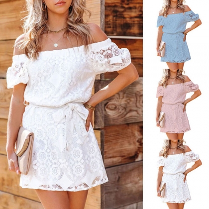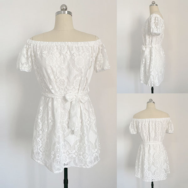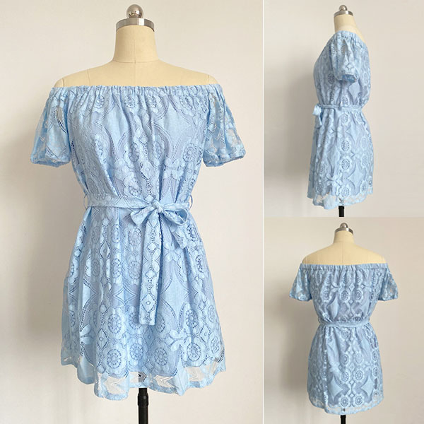Do you like the lace clothing? Then this dress will be your wise choice. Thanks to off shoulder design, you can show off your charming clavicle and smooth skin. And the waist belt to enhance your charms and showcase your figure line. Add a sparkling necklace and shining high heel for a elegant and feminine summer daily look.