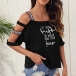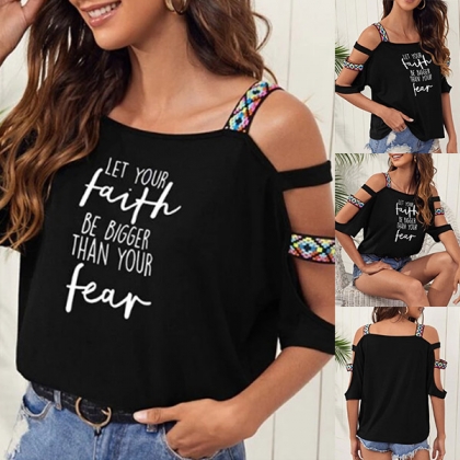 Sexy Off-shoulder Letters Printed Colorful Sling T-shirt