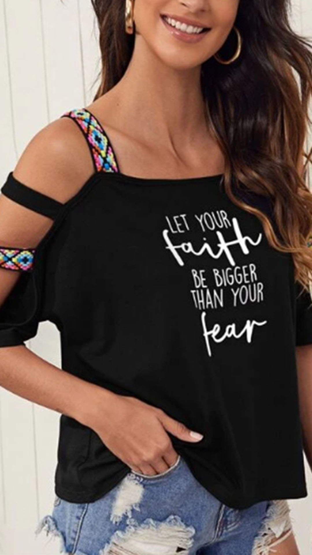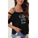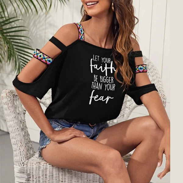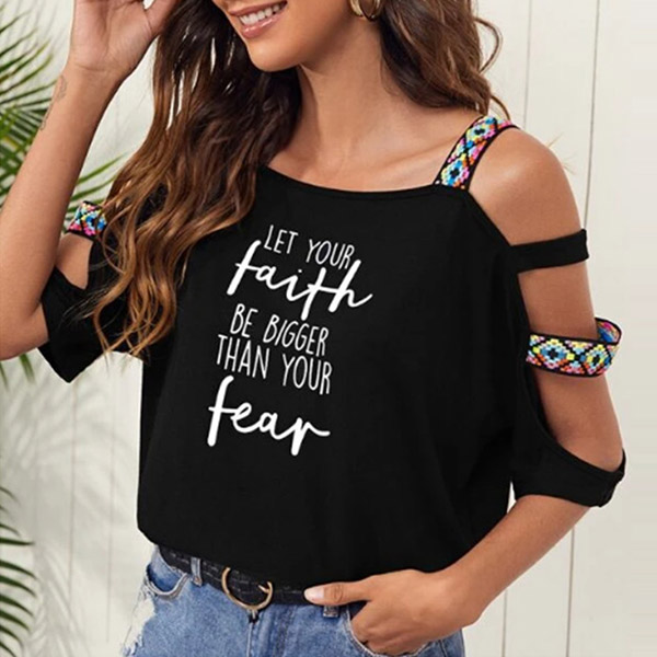 Compared with your other t-shirts,this piece not only can keep the comfy,but also can bring you more style. The off-shoulder and colorful sling design are the highlights,which make this piece full of sexy and flirty vibes. And the letters printed details will add some extra charm. Attracted? Then invite it to your wardrobe ensemble!
