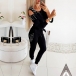 När du inte vill göra din dagliga matchning på dina lata dagar, kan du bara fokusera på detta tvådelade set. In består av en långärmad topp med rund hals och en byxa, de off-shoulder och pärlformade detaljerna kommer att få den att se sexigare och mer attraktiv ut. Du kan hålla dig mysig men ändå snygg i detta tvådelade set.