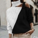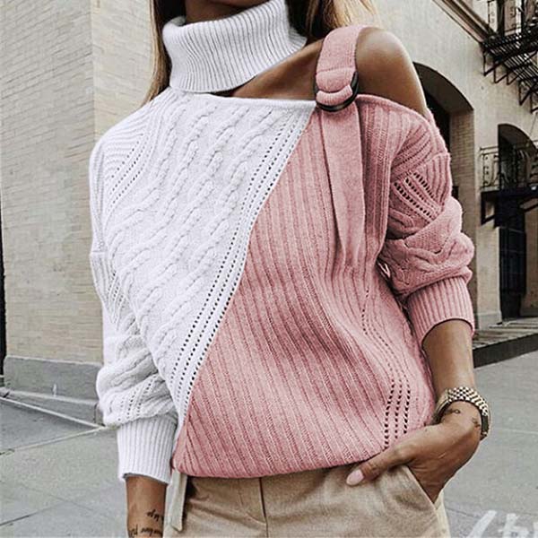 Sexy Off-shoulder Long Sleeve Contrast Color Turtleneck Sweater
