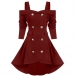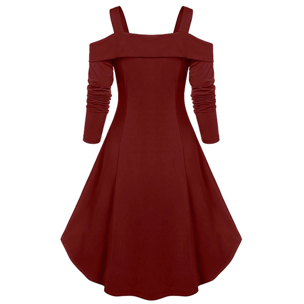 Sexy Off-shoulder Long Sleeve Double-breasted High-low Hem Dress