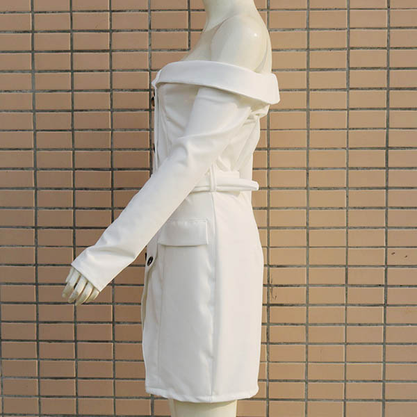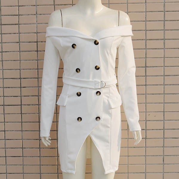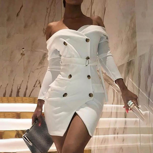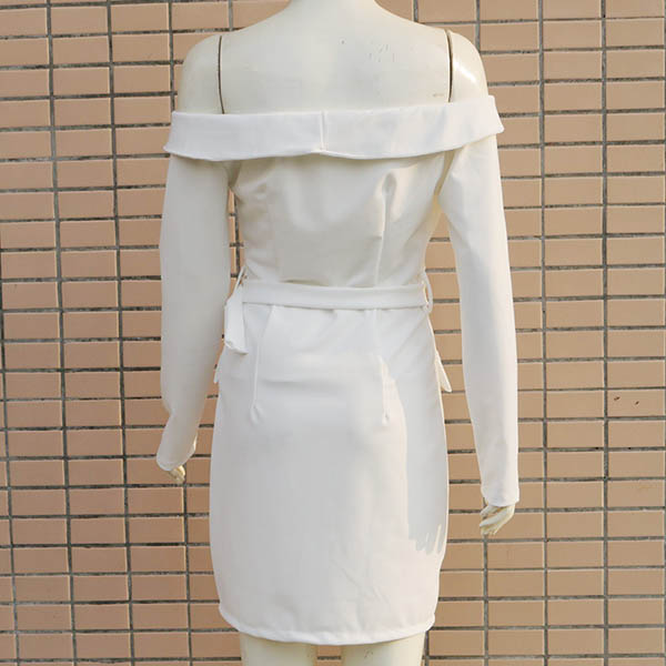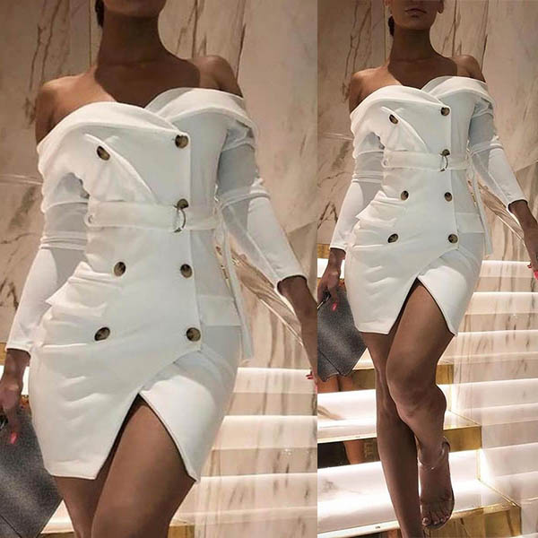 Sexy Off-shoulder Long Sleeve Double-breasted Party Dress